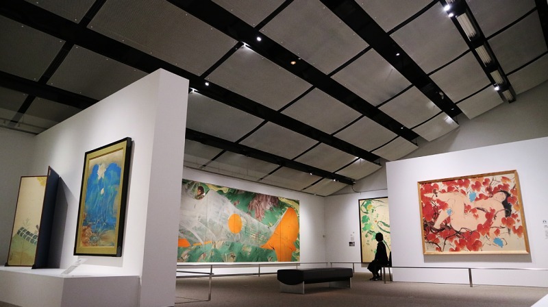会場には大画面の迫力ある絵が並びます。色も鮮やか。『床の間の日本画』とは全く異なる空間が広がっています。