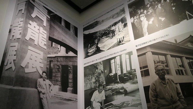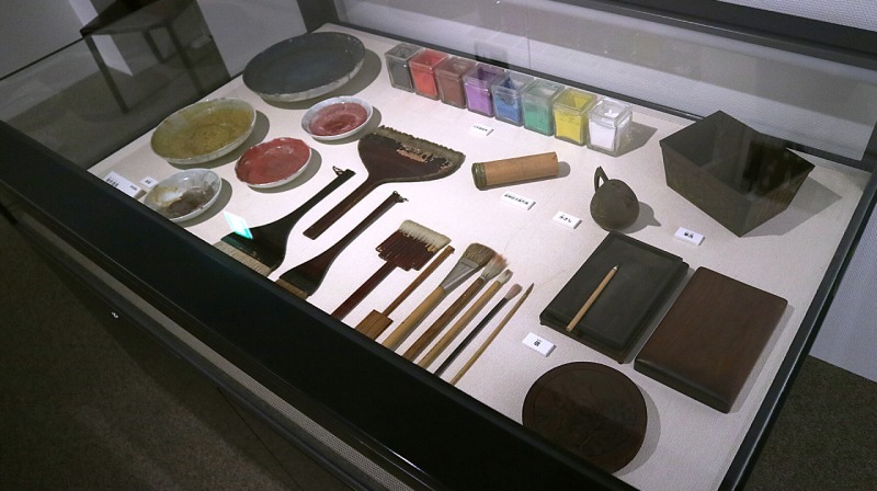龍子が使っていた絵筆や絵皿、硯などの制作道具も展示されていました。
