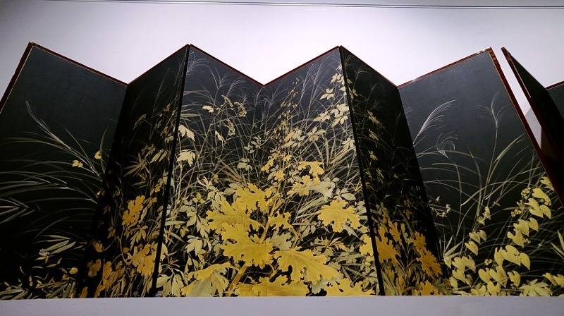 繊細なのにすごく迫力ある線。六曲一双の大きな屏風は正面から見てももちろん素晴らしいのですが、かがんで下から仰ぎ見ると草が上に伸びる勢いに驚かされます。まるで草むらの中に入ってしまったよう。