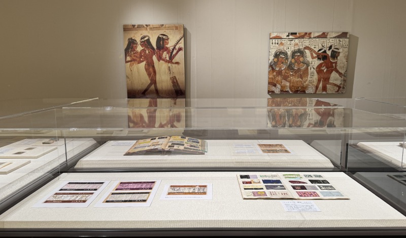 そんな色とりどりのマッチ箱のデザインにもエジプト柄が。デザインの元になったと考えられる資料も展示されています。