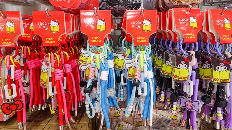 ストラップチャームは、キティとクロミ、シナモンの3種類があります。