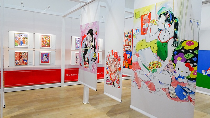 グッズだけではなく、30人のアーティストとコラボしたイラストレーション作品の展示もあります。