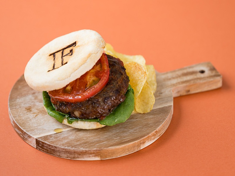 ブランドの象徴「Fマーク」入りバンズで国産牛パティを挟んだバーガーと目の前で仕上げる生アップルパイ、香り高いフォション紅茶を販売。