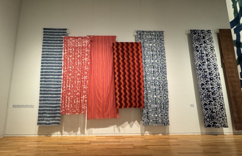 会場では、色とりどりの幅広布を展示。柚木ならではの生命感と色彩あふれる模様が見どころです。