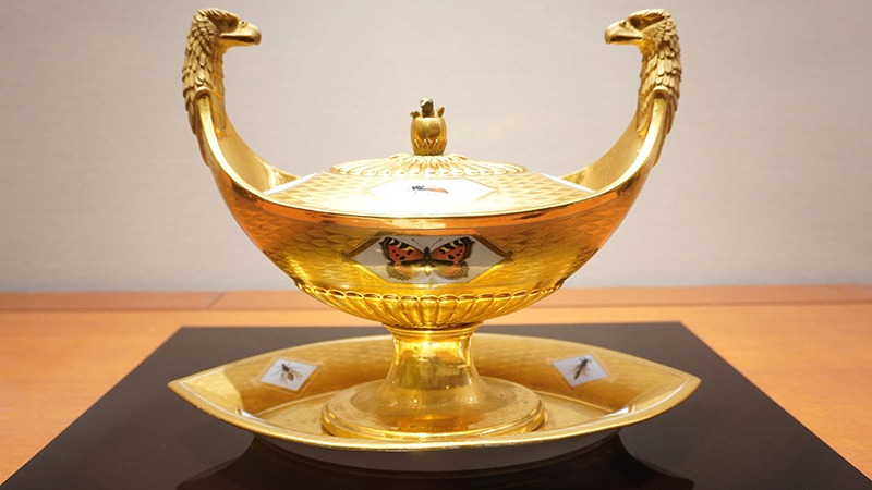 そしてナポレオン帝政時代の作品では、金で装飾された食器や大型の壺など、公的な場面で使われた品々がずらり。
