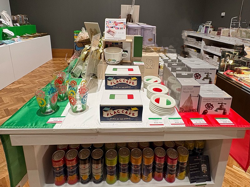 展示室出口には、さまざまなイタリアグッズが揃うショップが設置されています。