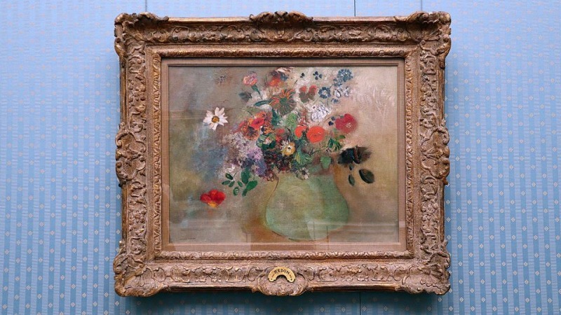 晩年のルドンは花を多く描きました。妻がテーブルの上に生けた花を描いたものだそう。