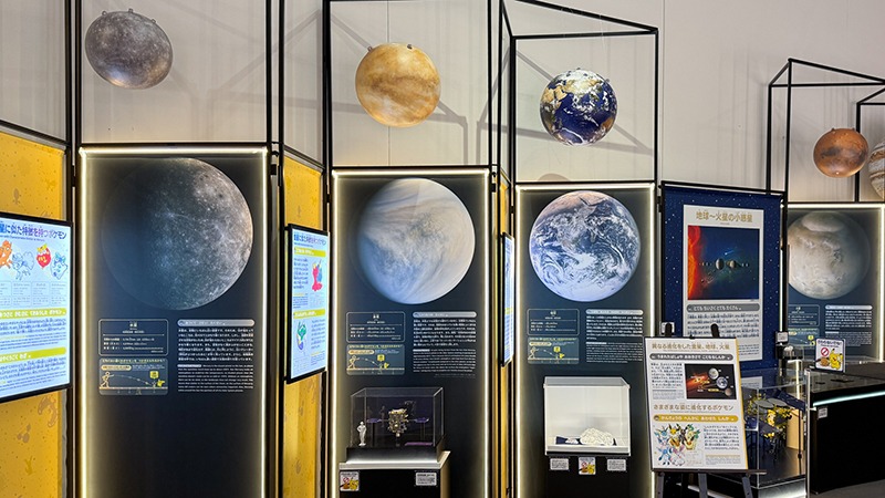 宇宙の広大さ、想像を超える多様な惑星の姿へ驚きつつ、生命が育まれる地球がいかに奇跡的な環境であるかについて実感できる展示です。