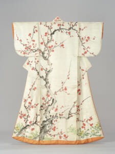 重要文化財《梅樹下草模様小袖》は、鳥取藩主池田家に伝来したもの。江戸琳派の絵師・酒井抱一が着物に直接絵を描いた「描絵小袖」です。