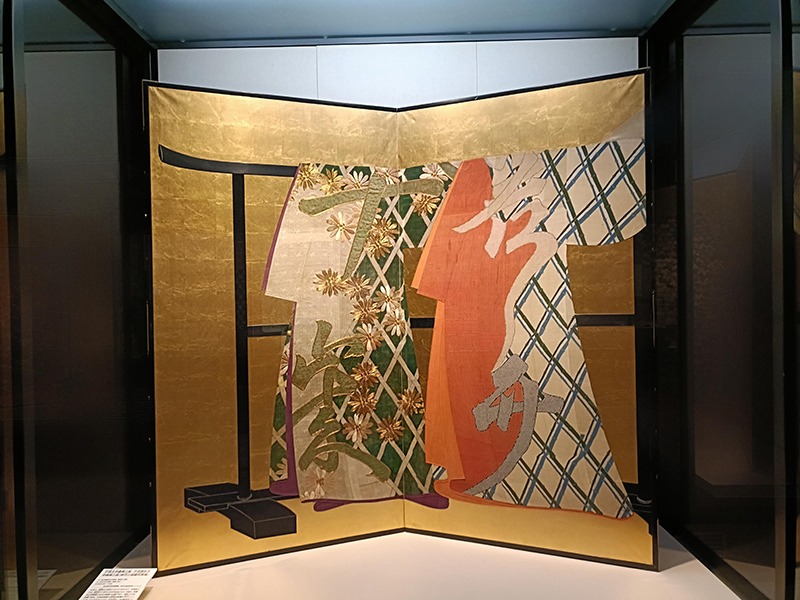 賤男が制作に関わった《小袖裂貼装屛風》の展示