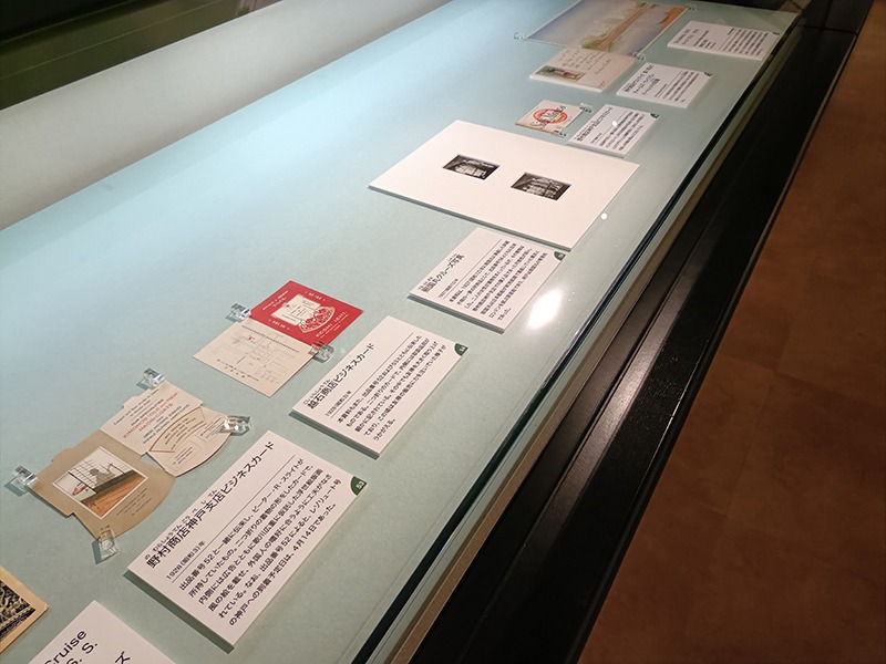 野村商店のビジネスカード、ゲストブックの展示