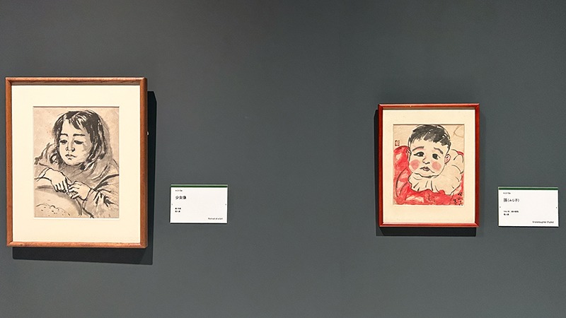 右の作品が、《孫(ふじ子)》1941年 個人蔵 ぷっくりほっぺがかわいい