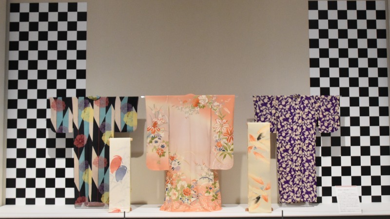大正・昭和の着物の現物が複数展示されているスペースは目にも華やかです。