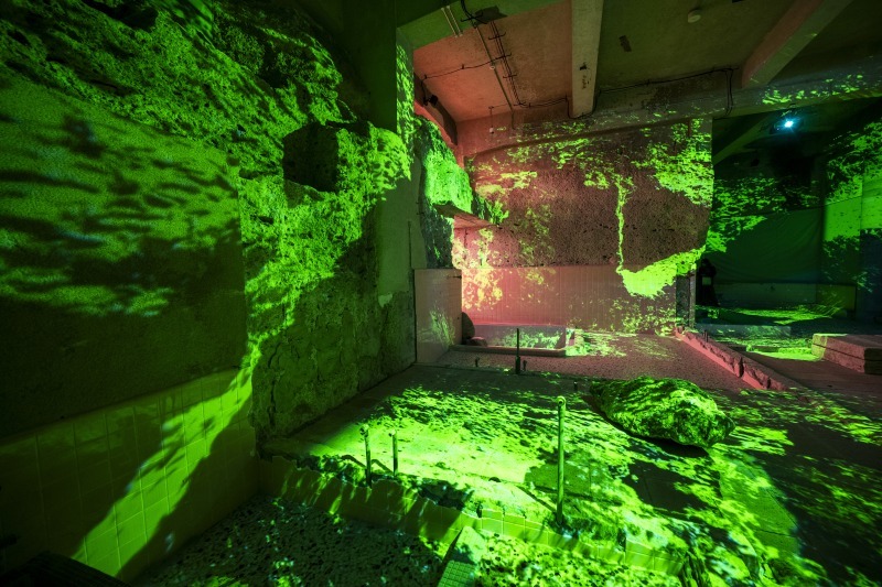 この建物の旧大浴場をまるごと作品に変えたのは、アーティストのYOSHIROTTEN。