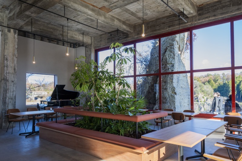 昭和の観光施設の華やかな雰囲気と現代の洗練された雰囲気が融合した建物、長い間この土地を見続けてきた大谷石の特徴を取り入れた光と音のインスタレーション、そして石のまちならではの景色と食が、一度に味わえる場所です。