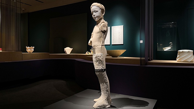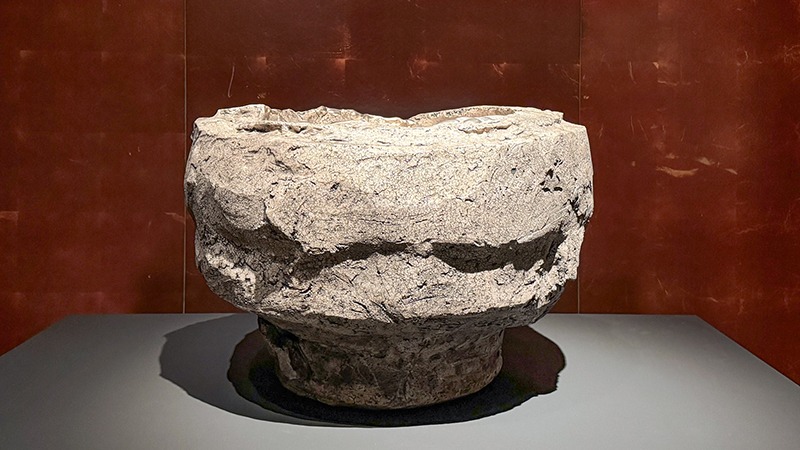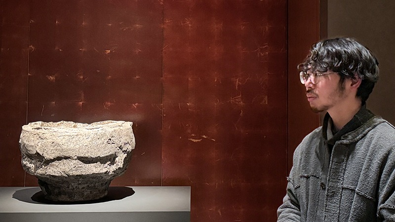 岩のようにも見える本作はとても重そうですが、ひもづくりの技法で成形され、内部が中空構造となっているため、実際は成人女性2人で動かせるほどの重さなのだとか。
