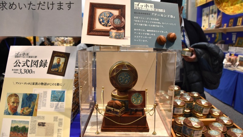 こちらのお菓子缶は、オンラインショップでの販売もない名古屋会場の限定商品。ブローチのようなキラキラしたデザインは、「花咲くアーモンドの木の枝」をイメージしており、中身を食べた後もそのままインテリアとして飾りたい美しさです。