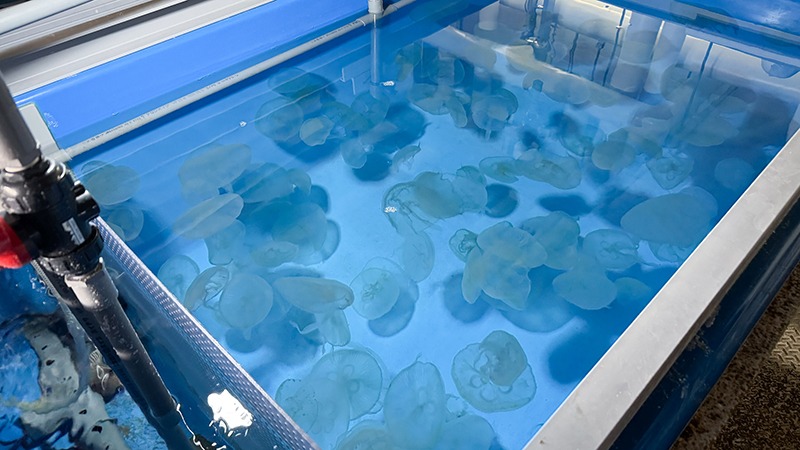 またクラゲの水槽としては国内最大級の「クラゲパノラマ」水槽は、裏にある水槽にクラゲを全て移し、掃除が行われます。