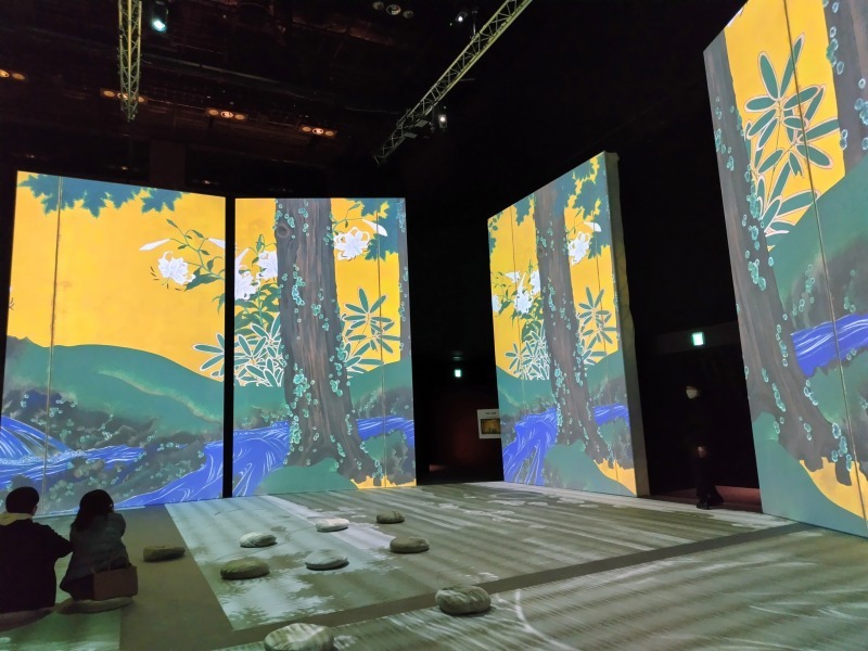 お子さんも飽きずに楽しむことができ、歩きまわらなくても同じ場所に座って変わる映像を観るスタイルなので、ご高齢の方にも足の悪い方にもアピールできる展覧会という印象。