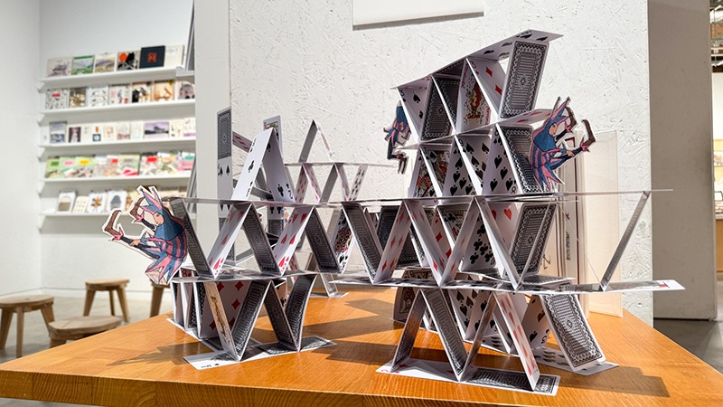 ワークショップでは、『さかさま』の絵から着想を得て、特別なトランプパーツを使った、現実ではありえないトランプタワーを積み上げます。
