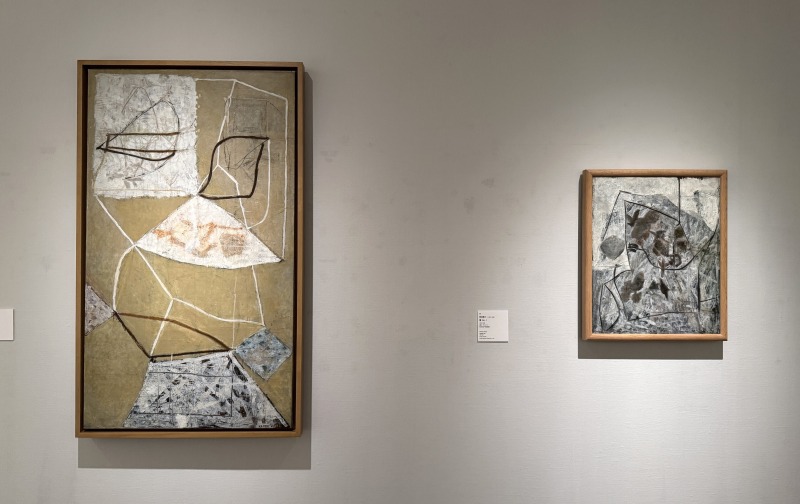 (右)岡田謙三《葉 No.1》1951-52年 油彩・キャンバス 秋田市立千秋美術館蔵
