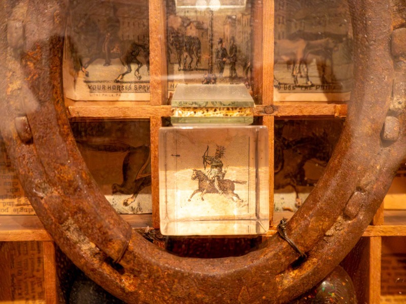 《パットナム・ネイル》は古いニューヨークの馬車文化から着想を得た作品。馬車がコラージュされ、格子状の部屋のような構造の中に、ボールなどが入っています。