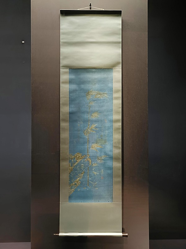 《竹図》は、青く染められた絹に描かれた、珍しい作例です。