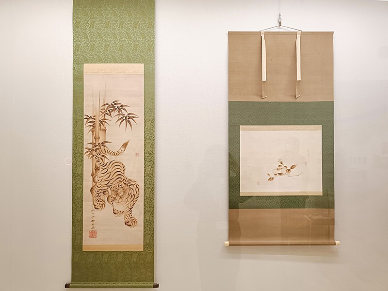 (左から)《竹虎図》 白峨 江戸時代(19世紀)、《椿図》 稲垣如蘭 江戸時代(18~19世紀) いずれも彌記繪菴