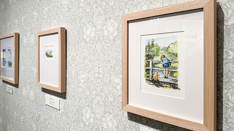 本展では、『クマのプーさん』『プー横丁にたった家』の挿絵(複製)や関連資料を展示。