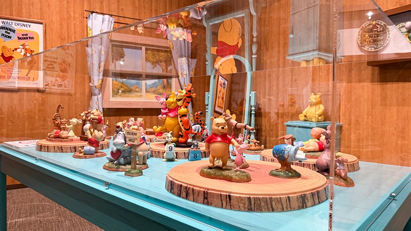 ここでは、プーさんたちが暮らす100エーカーの森を再現。ディズニー・アニメーション『くまのプーさん』のコンセプトアートや背景資料などが並びます。