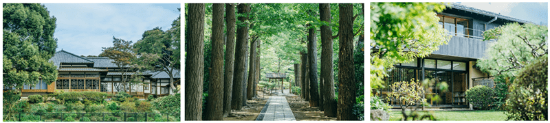 左から:「荻外荘公園」入澤達吉(医学者)、近衞文麿(政治家)/「大田黒公園」大田黒元雄(音楽評論家)/「角川庭園」角川源義(角川書店創業者、俳人)