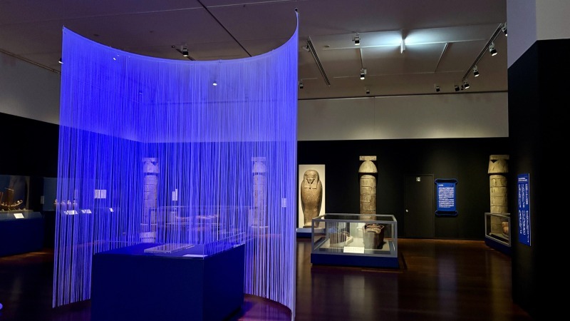 会場では、彫刻や棺、宝飾品、人間やネコのミイラといった、同館が所蔵する世界最高峰の古代エジプトコレクションが並びます。
