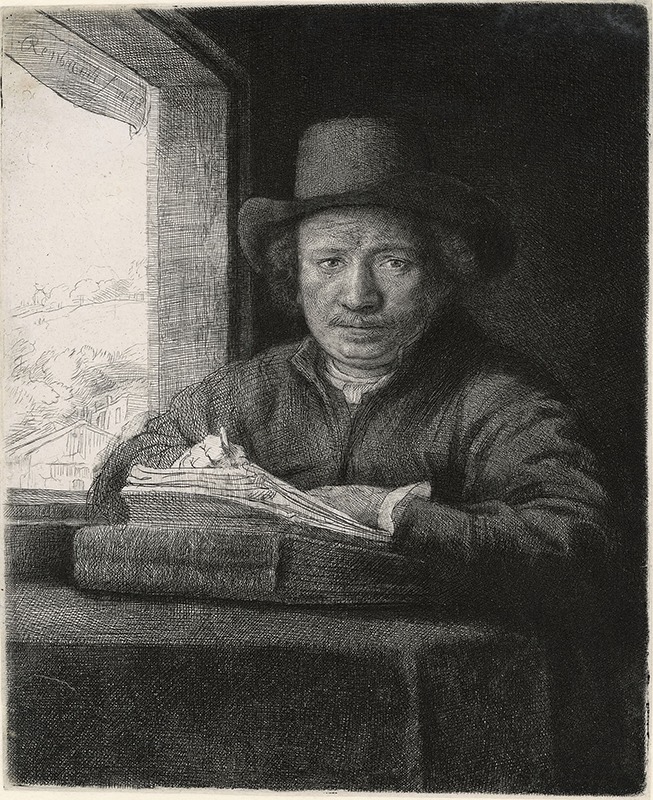 《窓辺でエッチングを制作する自画像》1648年 エッチング、ドライポイント レンブラント・ハウス美術館
