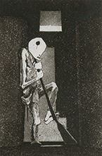 日本で銅版画に取り組む芸術家が急速に増加するのは、1950年代に入ってからです。材料や道具、学ぶ場が限られたなかで果敢に技法を取得し、独自の表現へと昇華させた銅版画家が多くいました。当館収蔵作家の中から、そうした銅版画界の黎明期に新しい表現を求めた菅野陽(すがの よう・1919-1995)と浜田知明(はまだ ちめい・1917-2018)を紹介します。