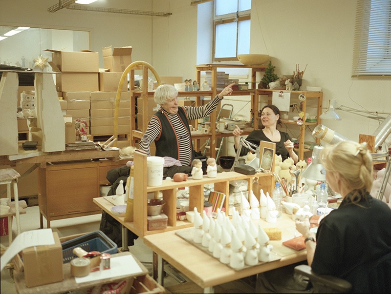 第1部の「⾒る」「知る」のセクションでは、リサのスケッチや作品、実際にスウェーデンで使っていた道具類を展⽰するほか、量産制作の⼯程と、そこに関わる国内外のさまざまな職⼈の仕事ぶりを映像や写真でたっぷりと紹介します。第2部の「作る」のセクションではPLAY! MUSEUMの特徴のひとつ、うずまき状の展⽰空間の中⼼部にある⼤空間で、リサの作り⽅を参考に、絵を描いたり陶器に模様をつけたりできるワークショップを毎⽇開催します。リサのものづくりの現場を通して、⼦どもから⼤⼈まで来場者全員が創作の楽しさに触れることができるまたとない機会です。