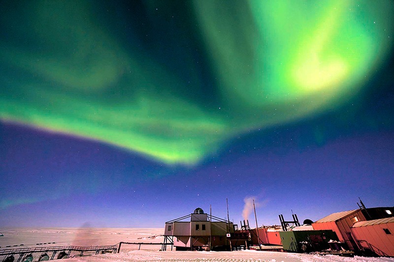 南極・昭和基地の上に広がるオーロラの輝き ©朝日新聞社