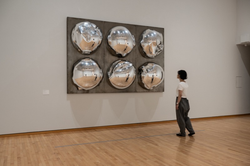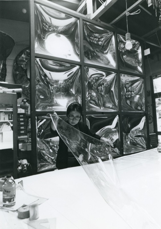 多田は、高度経済成長期を背景に普及した工業素材や加工技術を、芸術表現に積極的に取り入れた先駆的作家のひとりです。制作の手跡を感じさせない無機質な表面に、光の反射や透過、屈折、揺らぎといった有機的な要素を取り込み、移ろいゆく周囲の環境や鑑賞者の動きと呼応して表情を変える造形を生み出してきました。これらの試みは、量塊性や安定性を重視するアカデミックな具象彫刻の規範から離れ、空間や環境との関係性を志向した、戦後の抽象造形における展開に位置づけられます。なかでも多田は、光を単なる効果ではなく造形の中心として据え、美術、プロダクトデザイン、インテリア、建築を横断しながら空間そのものに働きかける実践によって、同時代の潮流のなかでも独自の立ち位置を築きました。