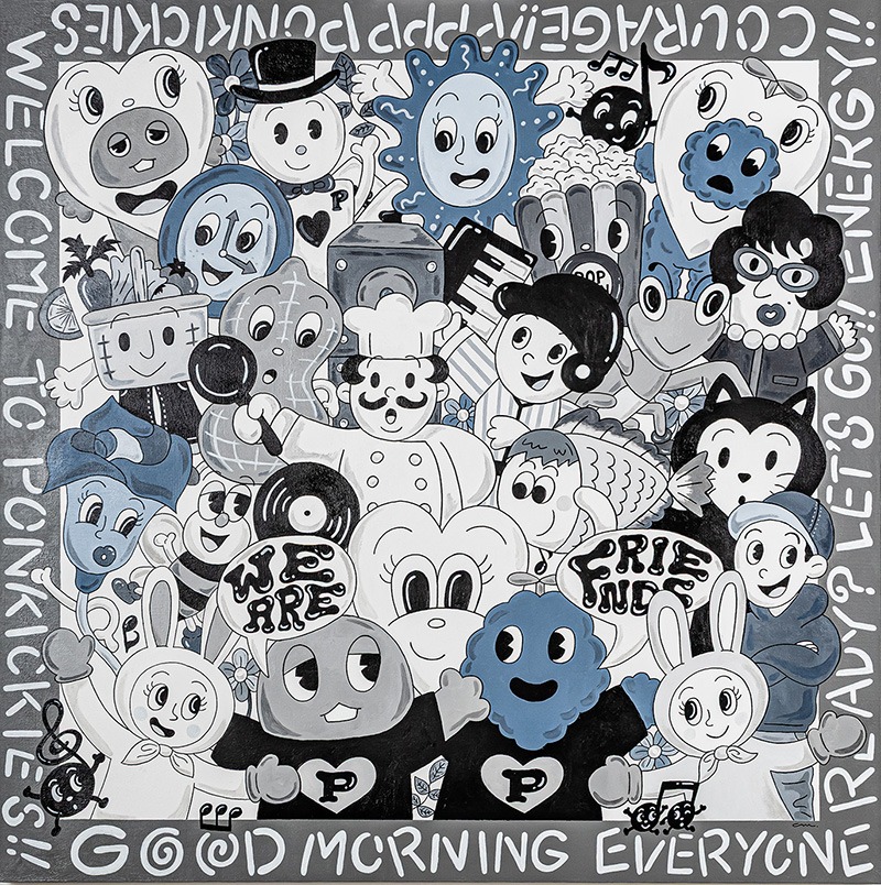 そして、本展キービジュアル永戸鉄也、アートディレクションをyooolkが担当します。各アーティストたちは、それぞれに思い入れのあるキャラクターたちを、様々な手法、メディアで独自の作品として制作します。