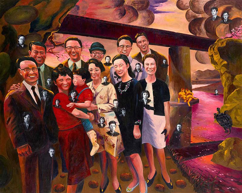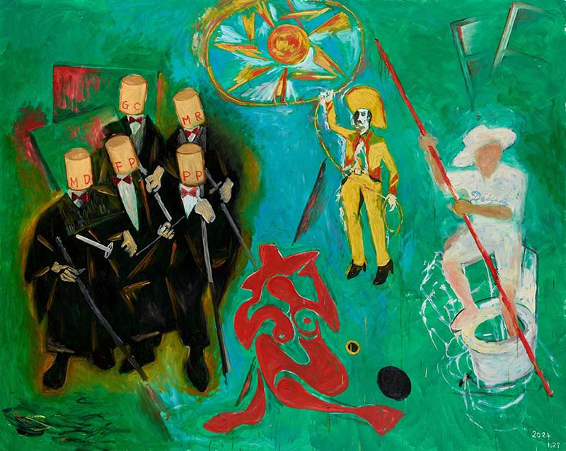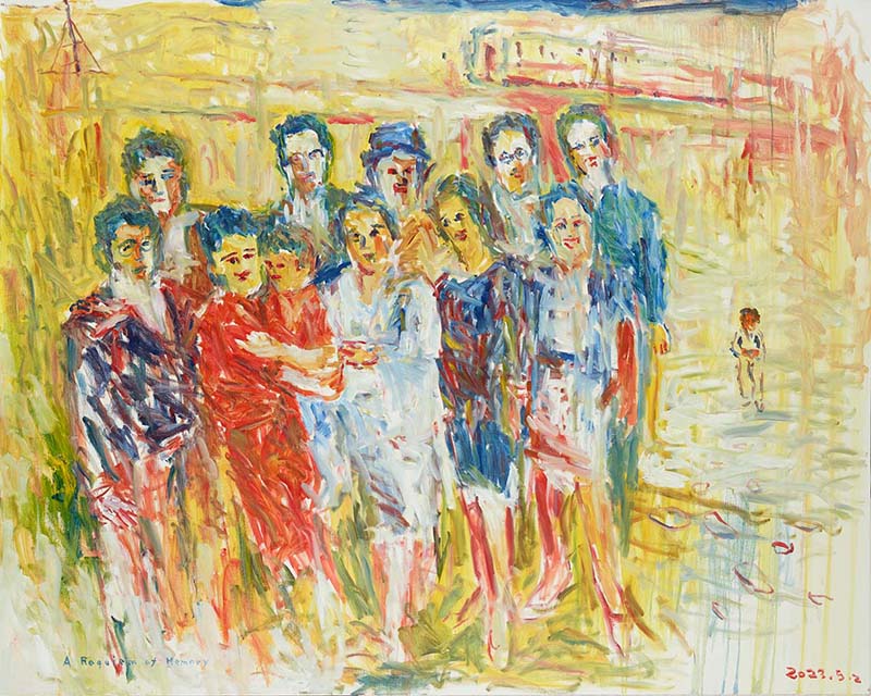 今年6月で90歳を迎える横尾忠則は、80代後半にして、新たな取り組みに着手します。「連歌」になぞらえて「連画」と名付けられた連作の端緒となったのは、故郷の兵庫県西脇で同級生たちと撮った記念写真でした。その写真をもとに描かれた《記憶の鎮魂歌》(1994 年、横尾忠則現代美術館蔵)を起点として、テーマにとらわれず描く、という挑戦が始まりました。昨日の絵は、今日の横尾を思いもよらない方向へと導き、およそ2年で描き上げた総数は60点を超えました。2025年に世田谷美術館で公開されたこのシリーズを神戸でも紹介します。